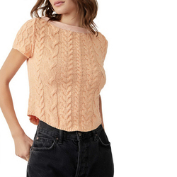HDND23018 Automne Haute Qualité Personnalisé Col Épissé Bâton Câble Tissé à Manches Courtes Mode Pull Pull pour Femmes