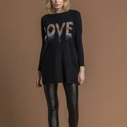 HDRM22010 Liebe Verzierte bequeme Longline Lounge wear Top Verziert Schöne Pailletten Mit Liebe Slogan die perfekte Freizeit kleidung