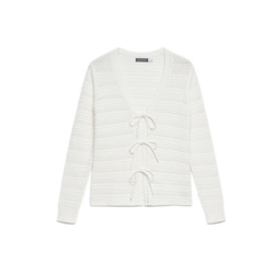 HDMV24003 V-Ausschnitt lange Ärmel weiß Baumwolle Häkel-Kardinal