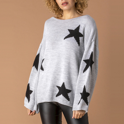 HDRM22081 Young and Fresh Grey Slouch Star Cuello redondo Estilo Soft Knit Sparkle Detail Jumper para días Casuales